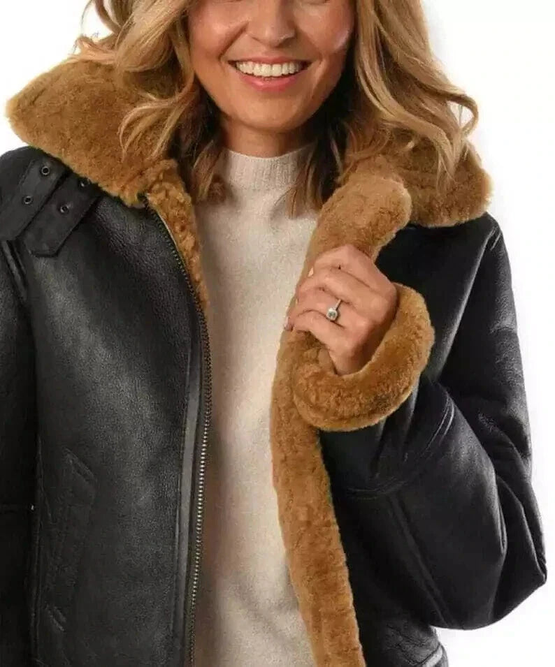 Women’s Premium Brown B3 RAF Aviator Bomber Jacket – Real Sheepskin Shearling with Hood